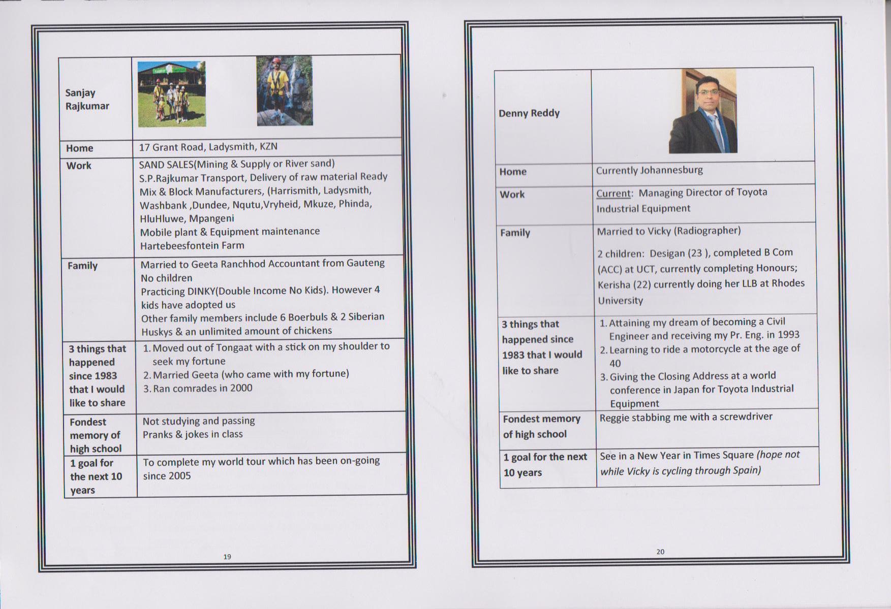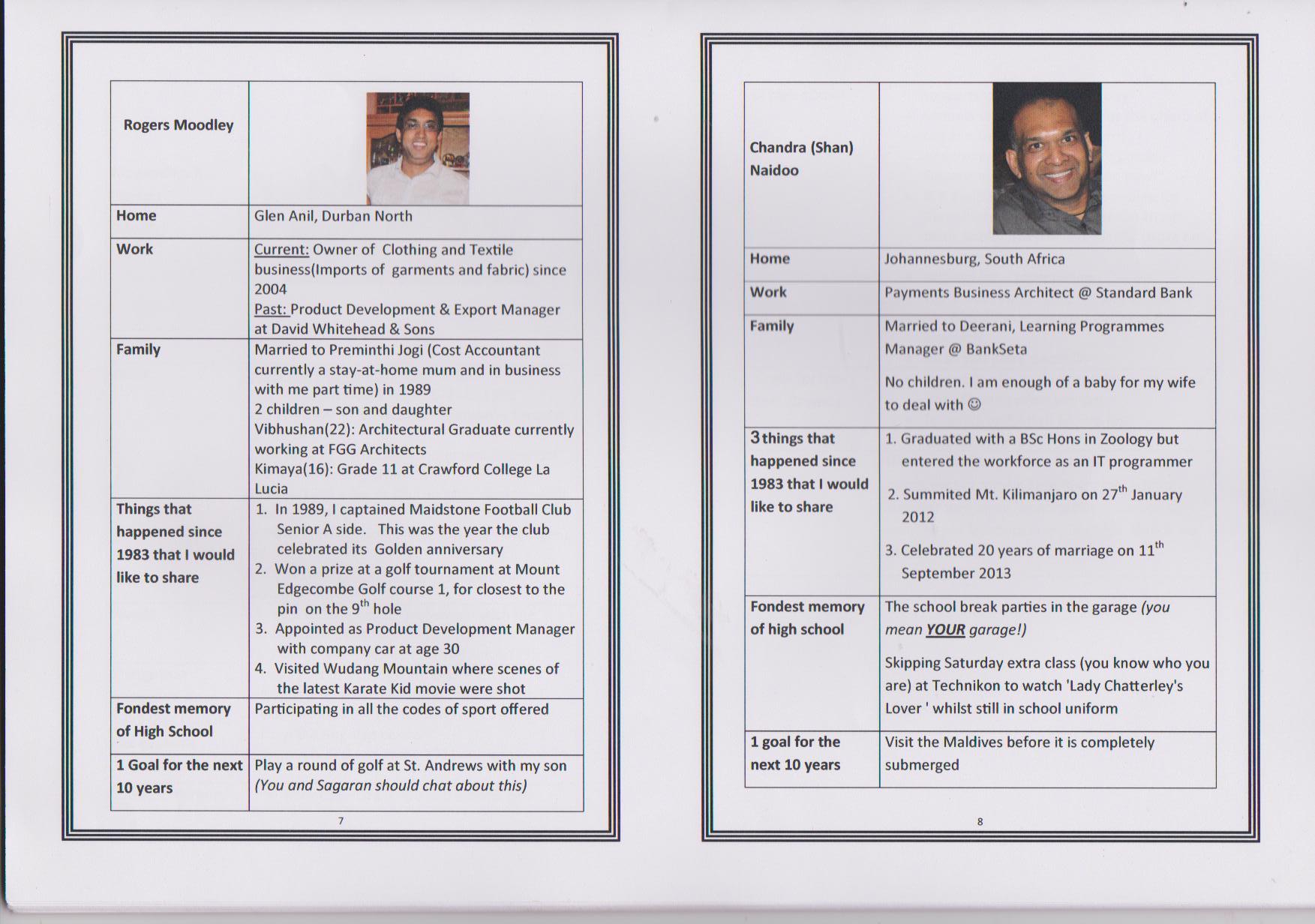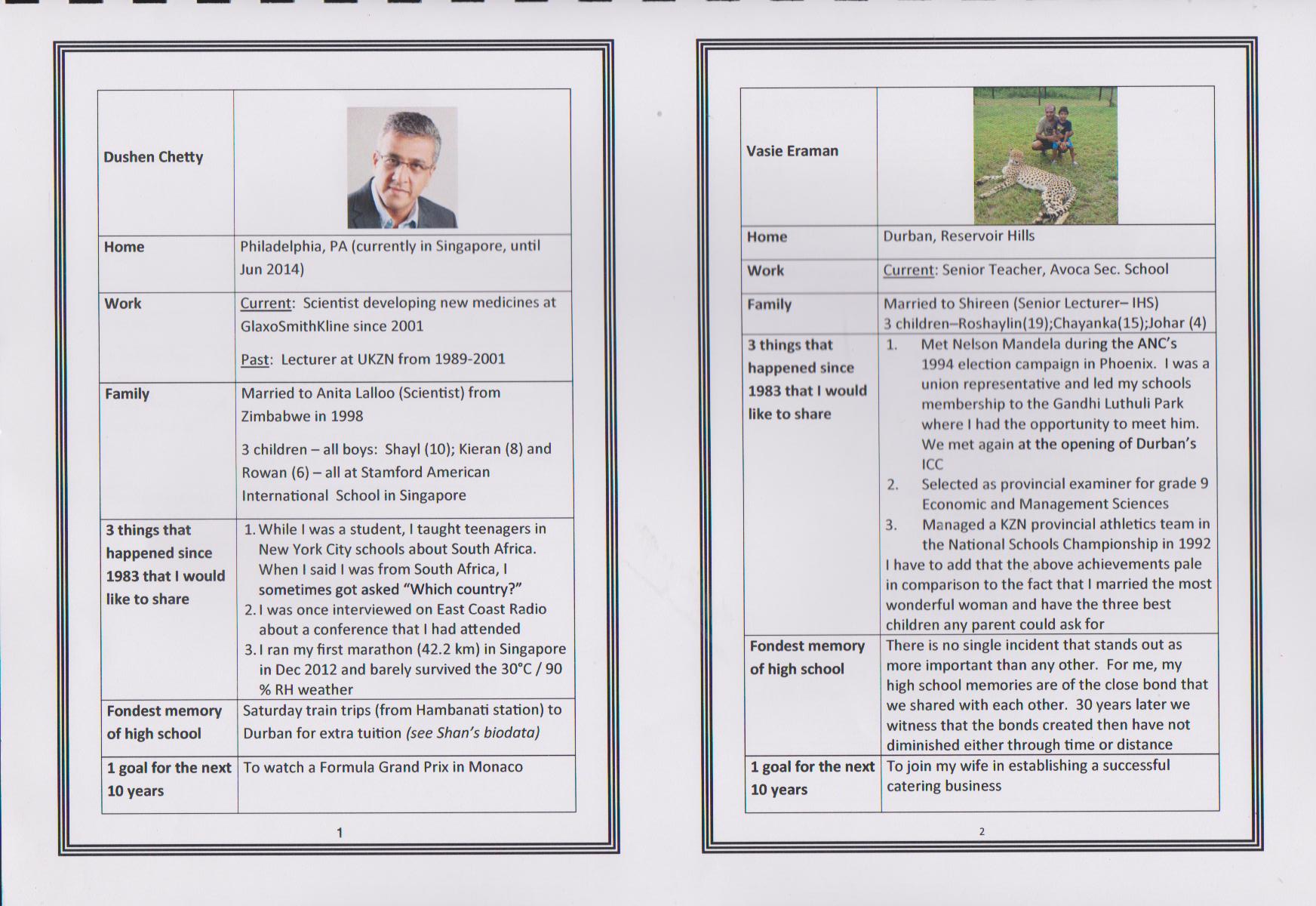 Dushendra J Chetty, the first presentation takes place in Durban, South Africa on 22nd March 2014 at Gateway Hotel in Umhlanga, the 30th reunion of the class of 1983. Dushen takes the trophy to Singapore and then to Philadelphia in USA. At the end of August 2014 the trophy was passed on to Sagaran Naidoo in Delaware, USA, and the trophy made it's way to Cape Town, South Africa.