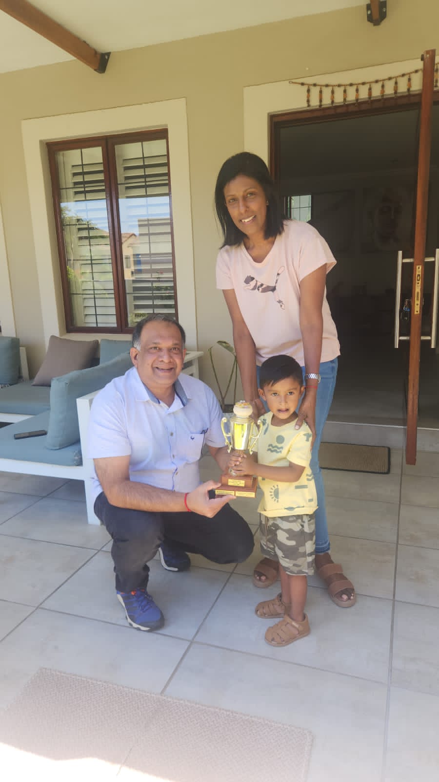 Inbam's handsome grandson, did the honours of receiving the trophy.
